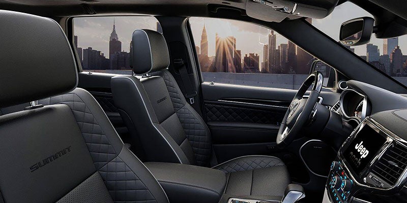Choose the Summit for chrome exterior trim elements or the SRT for a high-performance braking system, unique 20-inch alloy wheels, and a sport-tuned adaptive suspension. At the top of the Grand Cherokee lineup, the Trackhawk has 20-inch black-painted alloy wheels, black exterior trim elements, and high-performance brakes.